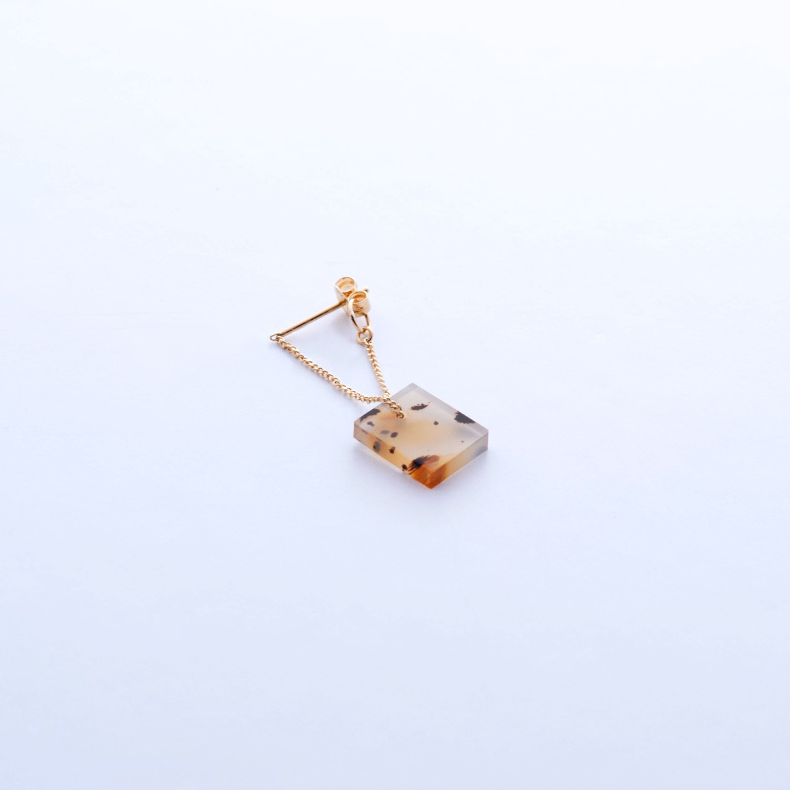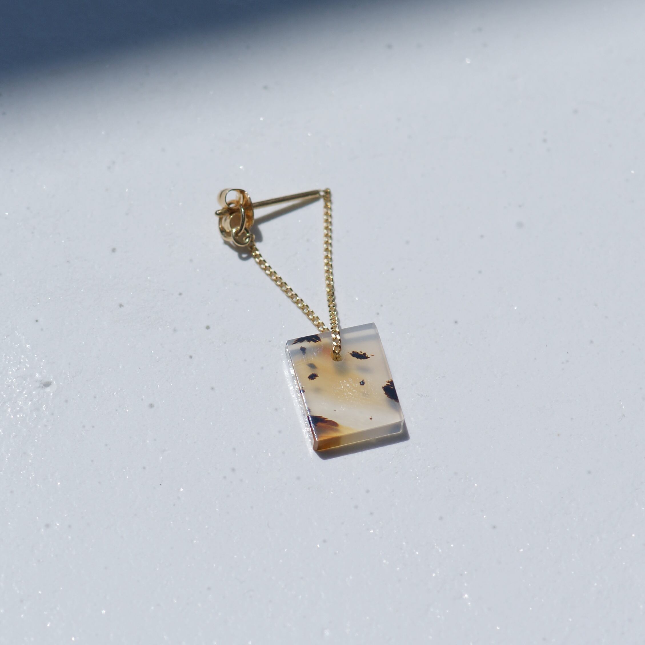 伽羅色が美しいモンタナアゲートがチェーンと共に揺れるピアス。